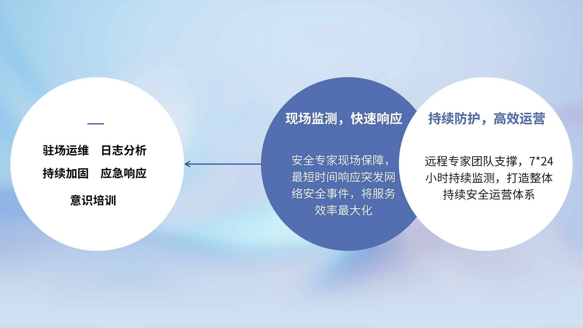 7X24小时持续监测安全事件,保持安全策略有效性,降低资产脆弱性风险,,,,精准拦截黑客攻击,,减少被黑客利用的机会,,第一时间遏制,,,,降低损失。。